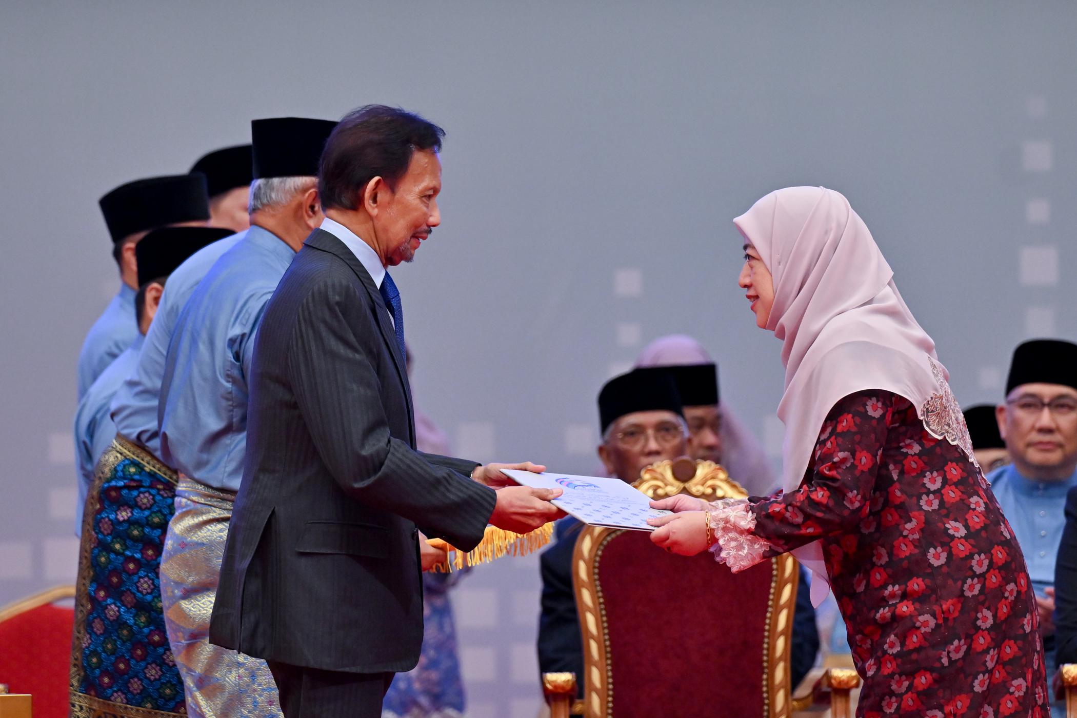 KDYMM Paduka Seri Baginda Sultan Haji Hassanal Bolkiah Mu’izzaddin Waddaulah berkenan mengurniakan Sijil Pengiktirafan Penggredan Prestasi Sektor Awam (3PSA) Melalui Penarafan Bintang kepada Yang Mulia Dayang Hajah Wanidawati binti Haji Tamat, Pemangku Pengarah Perikanan, Jabatan Perikanan, Kementerian Sumber-Sumber Utama dan Pelancongan– Gambar daripada Jabatan Penerangan.