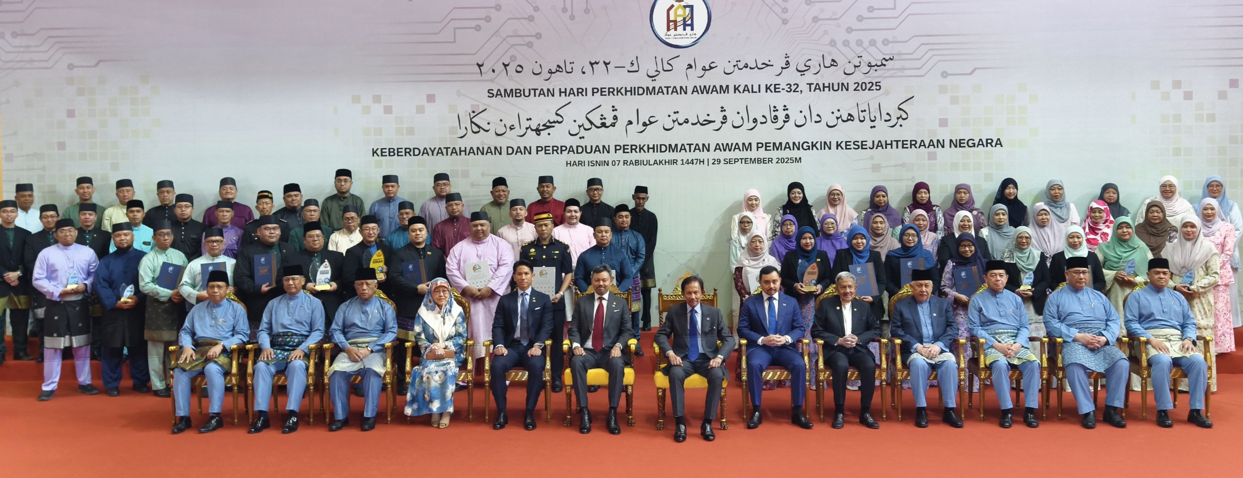 Kebawah Duli Yang Maha Mulia Paduka Seri Baginda Sultan Haji Hassanal Bolkiah Mu’izzaddin Waddaulah ibni Al-Marhum Sultan Haji Omar ‘Ali Saifuddien Sa’adul Khairi Waddien, Sultan dan Yang Di-Pertuan Negara Brunei Darussalam telah berkenan mengurniakan sijil pengiktirafan kepada empat agensi kerajaan yang telah memperolehi pencapaian di tahap tiga dan empat bintang di dalam Program Penilaian Penggredan Prestasi Sektor Awam (3PSA) Melalui Penarafan Bintang bagi Tahun Kewangan 2024/2025.